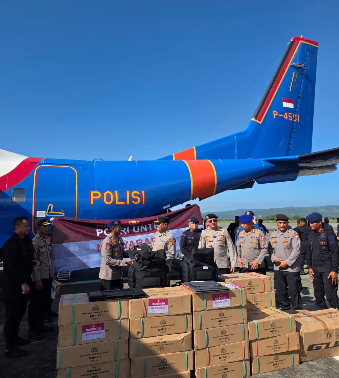 Tim Baharkam Polri Tiba di Aceh, Serahkan Bantuan Logistik SAR dan Kesehatan dengan Pesawat Polri CN 296/P-4501