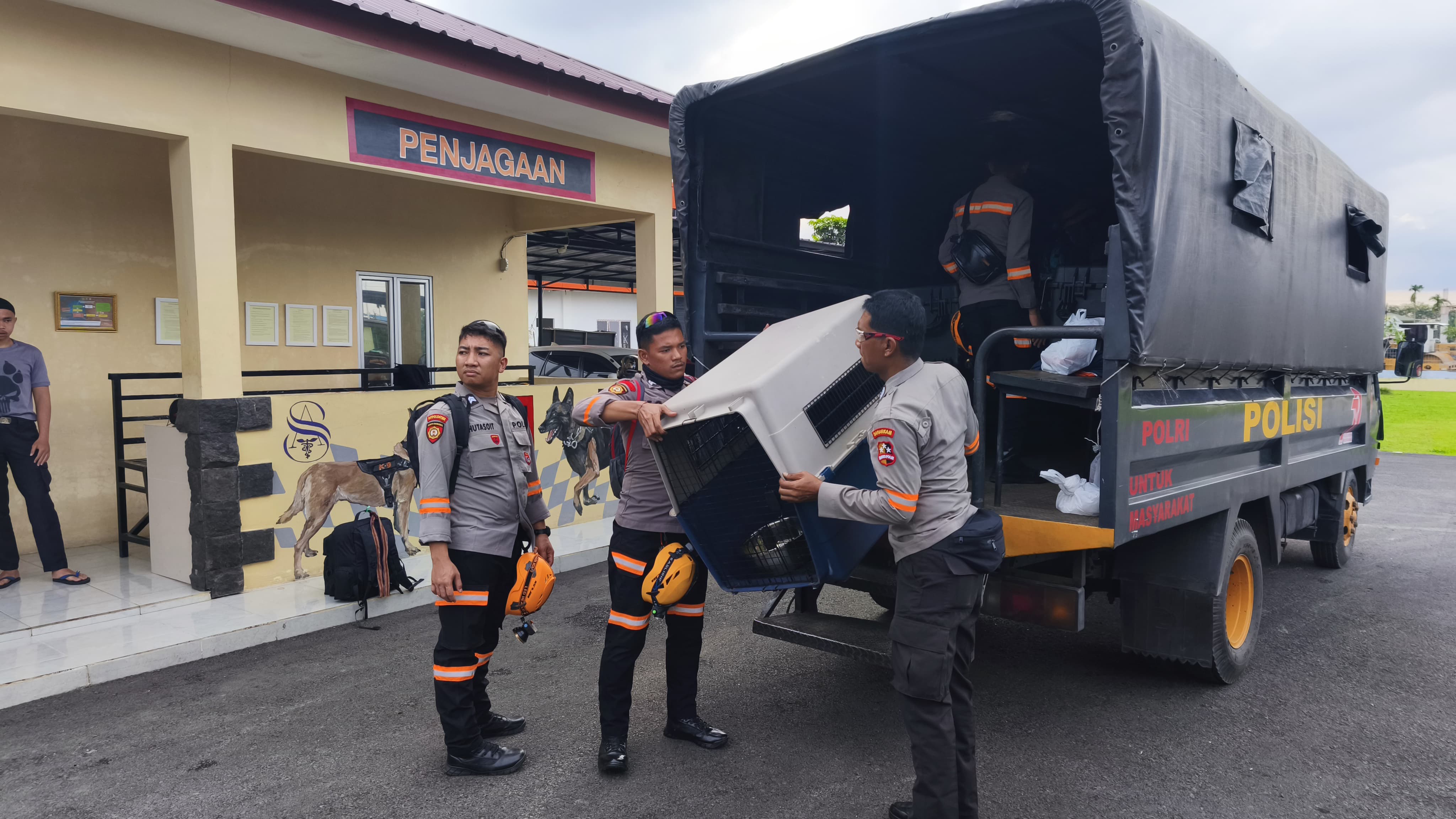 Seluruh personel dan unit K-9 dalam kondisi siap dan standby untuk bergerak segera setelah mendapatkan instruksi pemberangkatan.
