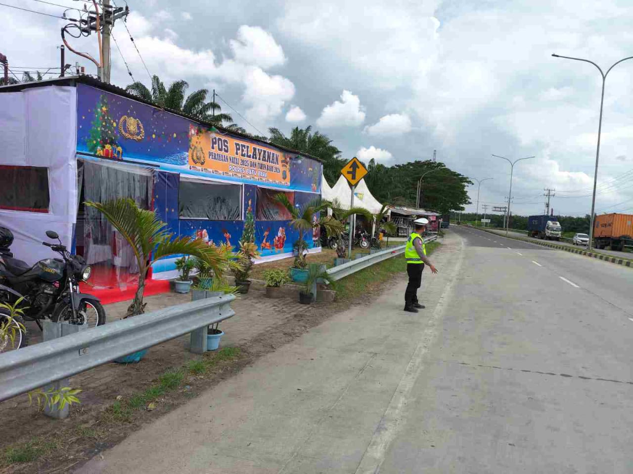 Batu Bara, Sumatera Utara – Satuan Lalu Lintas (Sat Lantas) Polres Batu Bara menjalankan tugas pengaturan lalu lintas (Gatur) di depan Pos Pelayanan (Pos Yan) 2 Pintu Tol Lima Puluh sebagai bagian dari dukungan terhadap pelaksanaan Operasi Lilin Toba 2025. Kegiatan ini bertujuan untuk menjamin kelancaran arus lalu lintas dan memberikan rasa aman bagi masyarakat yang menggunakan akses pintu tol tersebut.