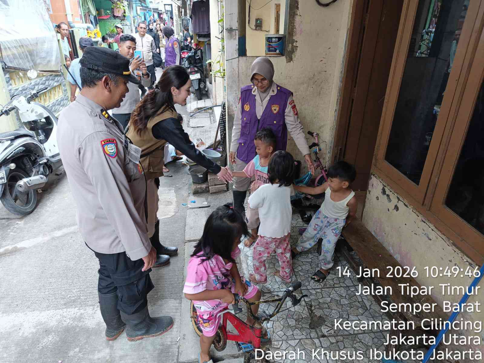 Tim Psikologi SDM Polda Metro Jaya menyusuri lingkungan permukiman warga. Mereka menyapa para orang tua, mendengarkan cerita dan keluhan yang masih tersisa, serta mengajak anak-anak bermain agar suasana kembali terasa lebih ringan. Pendekatan yang sederhana dan dekat ini dilakukan agar warga merasa ditemani dalam melewati masa pemulihan.