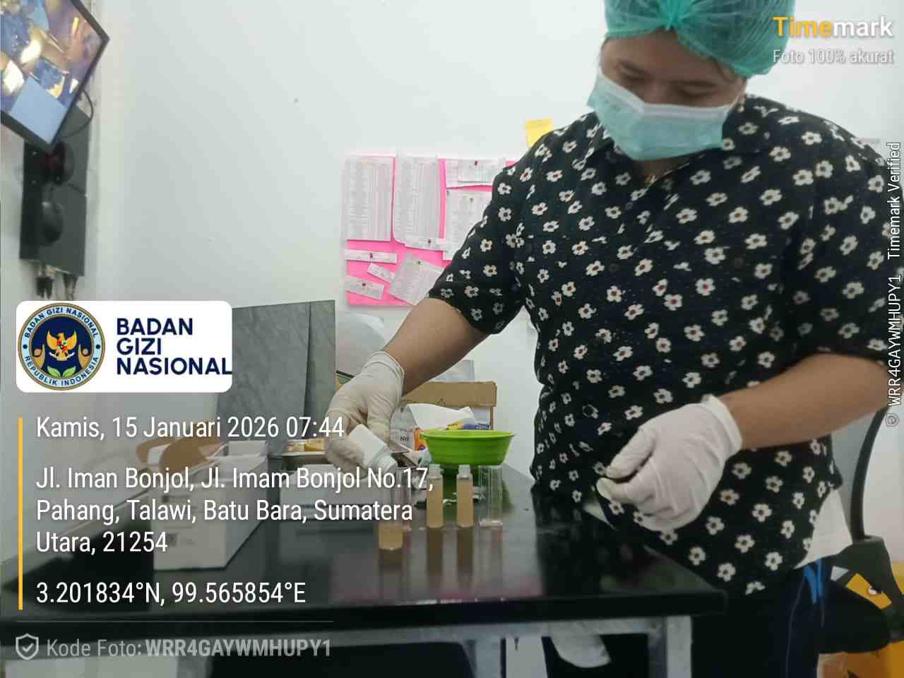 Pelaksanaan kegiatan ini diperankan oleh Evy Cristi R. Tambunan S.T (Kepala SPPG Polres Batu Bara) dan Devina Ruth Salri Sipayung, S. Tr. Gz (Ahli Gizi SPPG Polres Batu Bara). Sebelum didistribusikan, makanan melalui pemeriksaan Safety Food secara menyeluruh menggunakan metode organoleptik dan reagen kimia untuk memastikan aroma, rasa, bentuk, dan warna makanan dalam kondisi aman untuk dikonsumsi.
