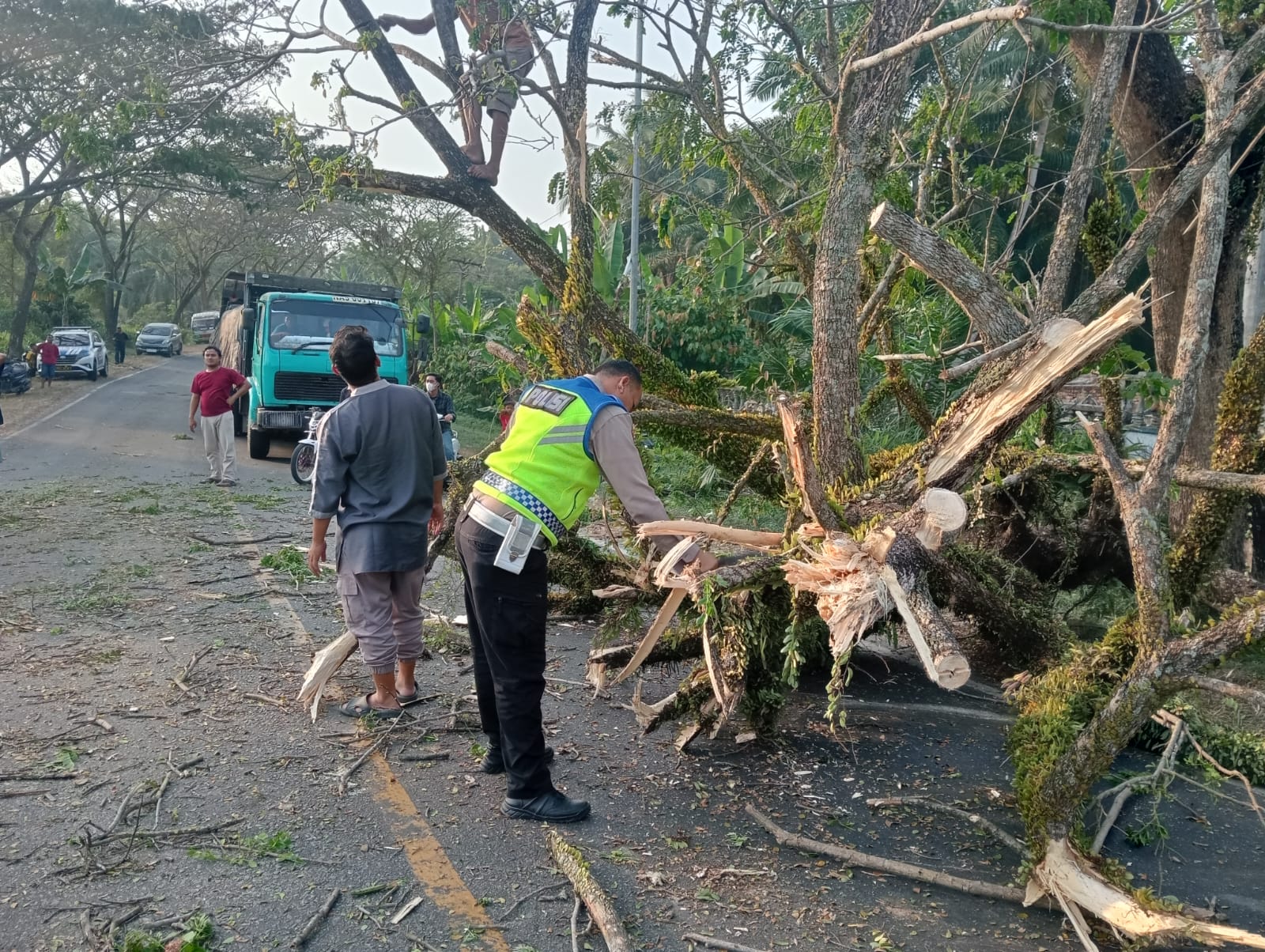 Selain membersihkan puing-puing pohon dari permukaan jalan, tim juga melakukan pemeriksaan singkat terhadap kondisi jalan sekitar untuk memastikan tidak ada bahaya tersembunyi yang dapat mengganggu keselamatan pengguna jalan ke depannya. Tindakan tersebut menjadi bukti komitmen Sat Lantas Polres Batu Bara dalam memberikan pelayanan yang komprehensif kepada masyarakat, tidak hanya dalam pengaturan lalu lintas sehari-hari tetapi juga dalam menangani situasi darurat yang dapat mengganggu aktivitas masyarakat.