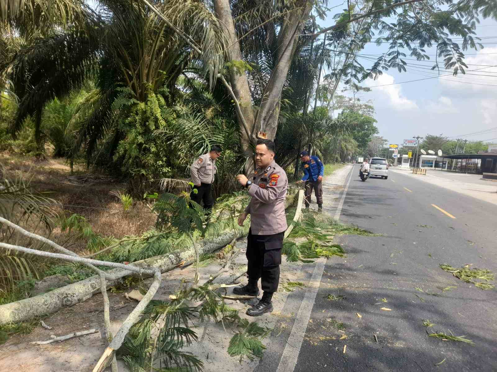 “Setelah kami tiba di lokasi, ditemukan bahwa sebatang pohon cukup besar telah tumbang dan sebagian bagiannya menutupi sebagian jalur jalan. Ini berpotensi menyebabkan kemacetan atau bahkan kecelakaan jika tidak segera ditangani,” ujar salah satu personel yang terlibat dalam penanganan.